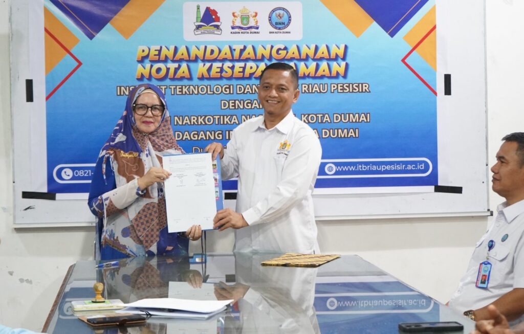 Dumai, 11-03-2026. – Institut Teknologi dan Bisnis Riau Pesisir (ITB Riau Pesisir) terus memperkuat jejaring kolaborasi strategis dengan berbagai pemangku kepentingan melalui penandatanganan Memorandum of Understanding (MoU) bersama Kamar Dagang dan Industri Kota Dumai dan Badan Narkotika Nasional Kota Dumai. Kegiatan tersebut dilaksanakan di ruang rapat ITB Riau Pesisir pada Rabu, 11 Maret 2026, sebagai bagian dari upaya sinergi antara dunia akademik, dunia usaha, dan lembaga pemerintah dalam mendukung pembangunan sumber daya manusia yang unggul dan berintegritas.
